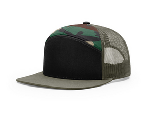 HCWTAF 7 Panel Flat Bill Trucker SnapBack Cap - BLACK GREEN/CAMO/LODEN