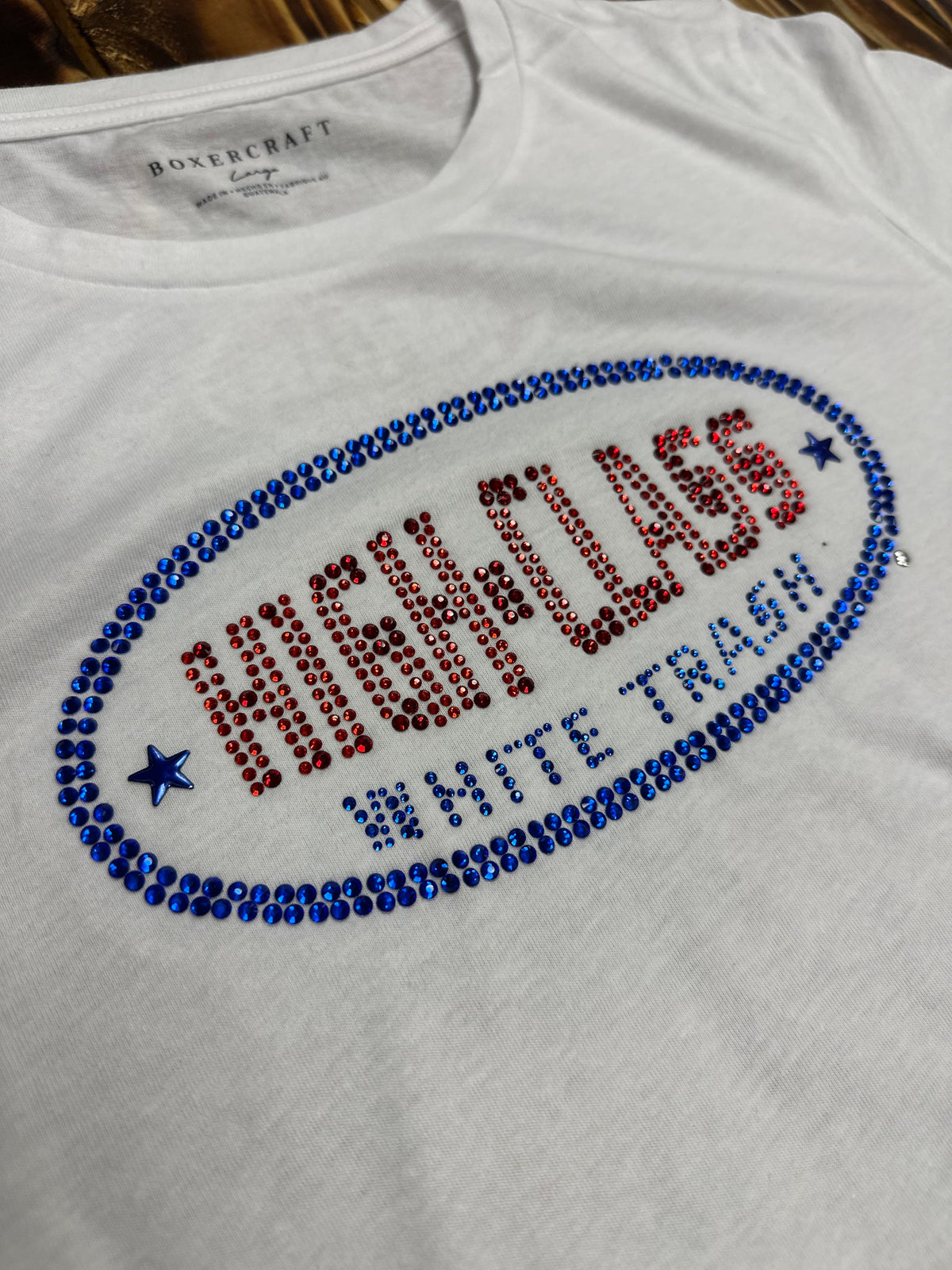 Made by Boxercraft, the Essential Crewneck Tee will prove itself wear after wear. Embellished with custom rhinestones full front and OG oval logo back yoke,